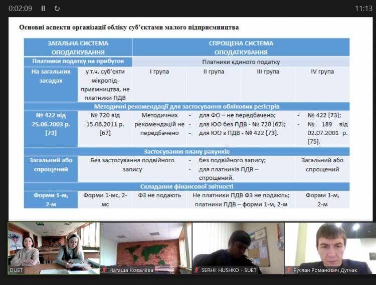 Завершили навчання найкращі студенти спеціальності 071 «Облік і оподаткування», ділові, амбіційні, креативні, спрямовані на успіх. Захист кваліфікаційних магістерських робіт відбувся онлайн 22 лютого 2022 р. Більшість робіт захищались здобувачами зі своїх робочих місць, адже це головні бухгалтери, керівники малих підприємств та відділів, аудитори, підприємці, фахівці.