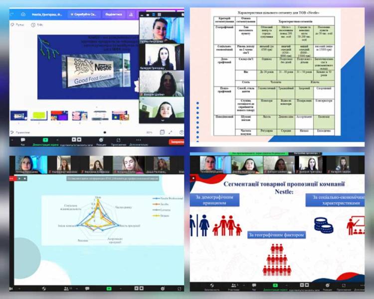 В межах практичних занять з дисципліни «Маркетинг» студентами 2 курсу таких економічних спеціальностей, як «Фінанси, банківська справа та страхування», «Менеджмент», «Маркетинг», «Підприємництво торгівля та біржова діяльність», а також «Облік і оподаткування» було проведене міні маркетингове дослідження діяльності компанії Nestle на вітчизняному ринку. Студенти представили свої результати дослідження у вигляді яскравих та досить цікавих презентацій, які окреслювали, зокрема основні напрями діяльності на ринку, що найбільш привабливі для Nestle в Україні; конкурентів компанії на українському ринку. Дуже добре студенти розібралися із сегментацією товарної пропозиції компанії та з визначенням конкурентних переваг окремих видів продукції Nestle.