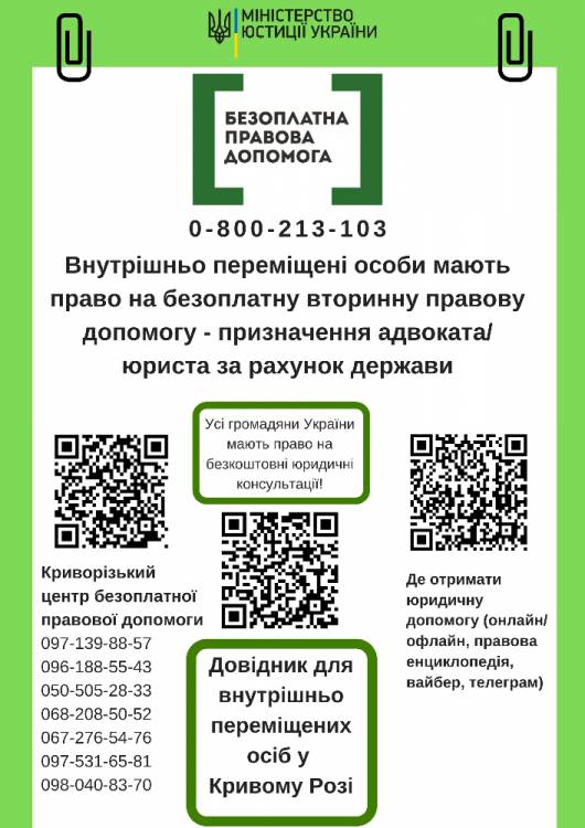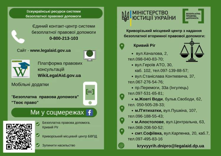 від Криворізького місцевого центру з надання безоплатної вторинної правової допомоги  https://t.me/legalaidkryvyyrih