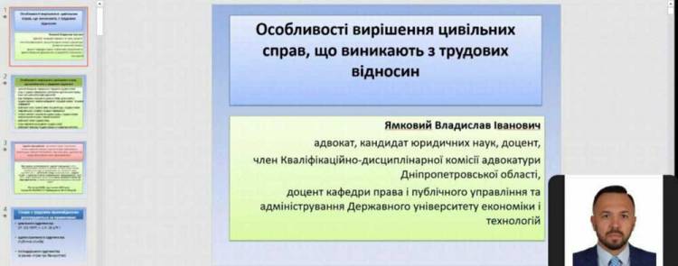 Важливим питанням для будь-якого громадянина є його права та обов'язки. Вже зараз ми маємо розуміти як захищати себе та свою працю. Нагода розібратися в особливостях вирішення цивільних справ, що виникають з трудових відносин випала нашим студентам та викладачам під час вебінару. Як це краще зробити та чим тут допоможе держава?
