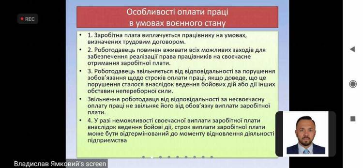 Відповідь на ці питання дав наш спікер - Ямковий Владислав Іванович, адвокат, кандидат юридичних наук, доцент, член Кваліфікаційно-дисциплінарної комісії адвокатури Дніпропетровської області, доцент кафедри права і публічного управління та адміністрування Державного університету економіки і технологій. Він проаналізував судову та цивільну юрисдикцію з трудових питань, а також допоміг розглянути окремі практичні ситуації. Наприклад, коли вам нарахували більше або менше зарплатні - винен роботодавець, судова влада в такому випадку буде на стороні працівника.