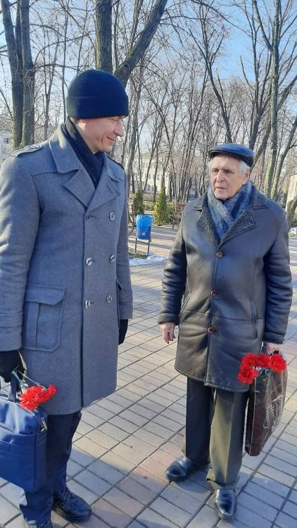 Тож, напередодні цього дня, 14 лютого, о 9:00 год. біля Металургійного райвиконкому на Алеї Слави відбувся мітинг-реквієм із покладанням квітів воїнам-афганцям, в якому взяли участь і працівники Криворізького економічного інституту. Постійним учасником урочистостей завжди є ветеран праці Геннадій Олександрович Єгоров (на знімку).