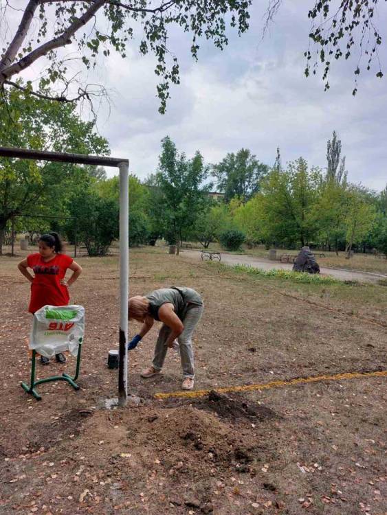 ВПО, які мешкають у нашому гуртожитку, з власною ініціативи провели благоустрій скверу імені Лесі Українки і навчального корпусу коледжу, зробили розмітку спортивного поля, виготовили і встановили футбольні ворота для дітей.