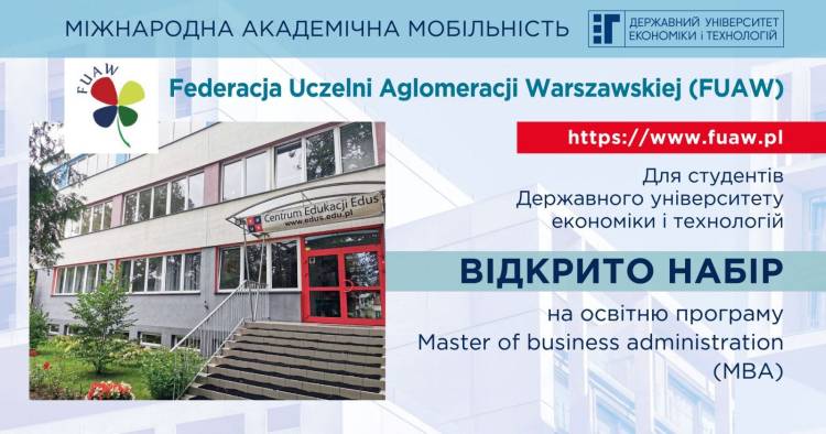 Для студентів Державного університету економіки і технологій на освітню програму Master of business administration (MBA)