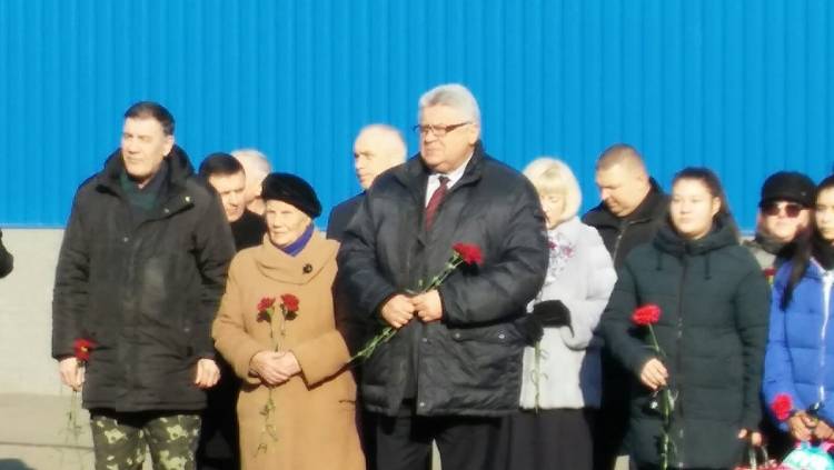 Вони зібралися, щоб вшанувати пам'ять полеглих у боях за визволення нашого міста і поклали червоні гвоздики до пам’ятника полеглим бійцям.