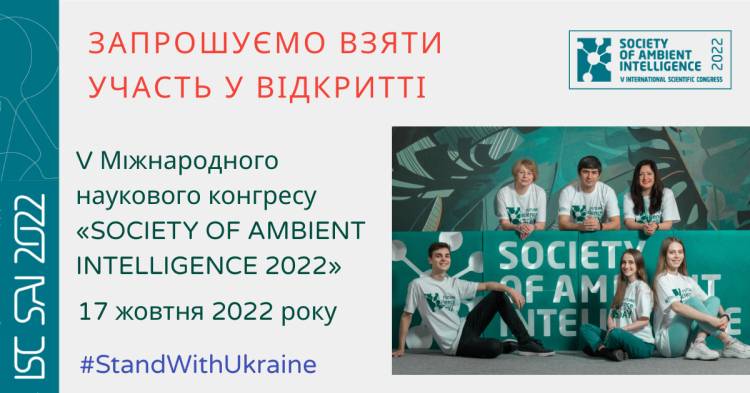 Запрошуємо Вас взяти участь у відкритті  V Міжнародного наукового конгресу «SOCIETY OF AMBIENT INTELLIGENCE 2022» (програма додається), яке відбудеться 17 жовтня 2022 року (початок о 10:00).