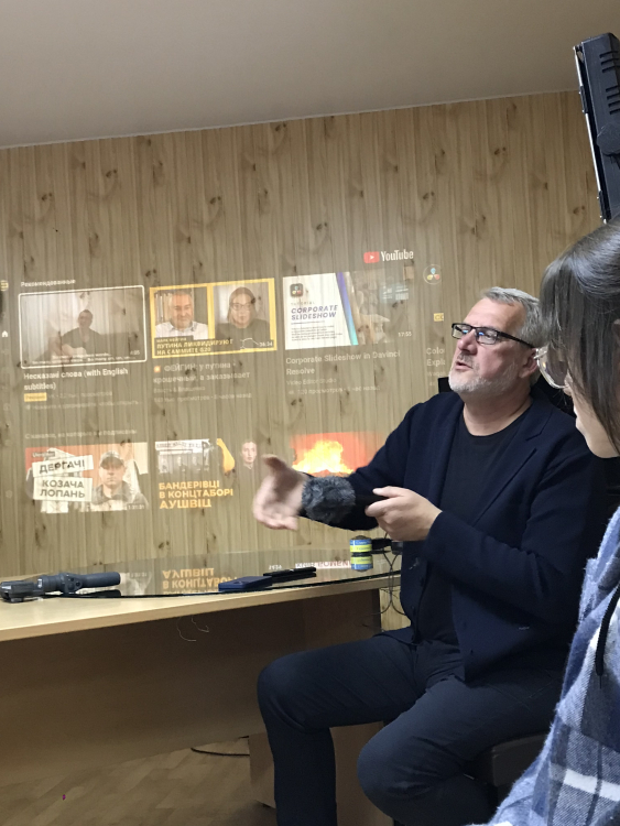 Від теорії –до практики, вже за тиждень студенти отримали можливість взяти участь у зйомках інтерв'ю з криворожанкою Ганною Глазковою, яка наразі активно допомагає українським переселенцям у Британії. Інтерв'ю провела студентка- міжнародниця ДУЕТ Олена Богомазова і студент КДПУ Кирило Тіссен. До процесу долучилися також Антон Кучабський та Маргарита Ткачова.