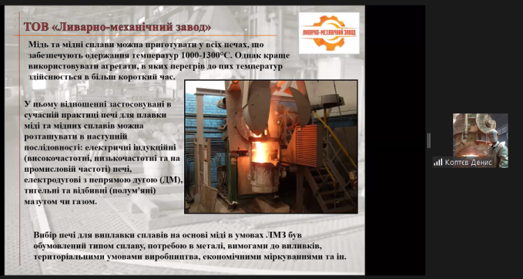21 жовтня в рамках третьої секції «Інженерія та технології у сфері сталого розвитку» відбулось в on-line форматі засідання дискусійної панелі «Інновації в металургійній та гірничодобувній промисловості, технологічні та інженерні тренди», присвяченої питанням: зеленої металургії, переоснащення гірничо-металургійної галузі, екології, освоєння нових технологій литва, енергетичного рециклінгу, модифікування напівпровідників, розробки математичних моделей інтелектуальних систем управління металургійними процесами, перспективам використання бурової хімії при бурінні вибухових свердловин, прогнозування довговічності та надійності обладнання, досвіду співпраці гірничо-металургійних підприємств із закладами вищої освіти з метою підготовки кваліфікованих фахівців для галузі.