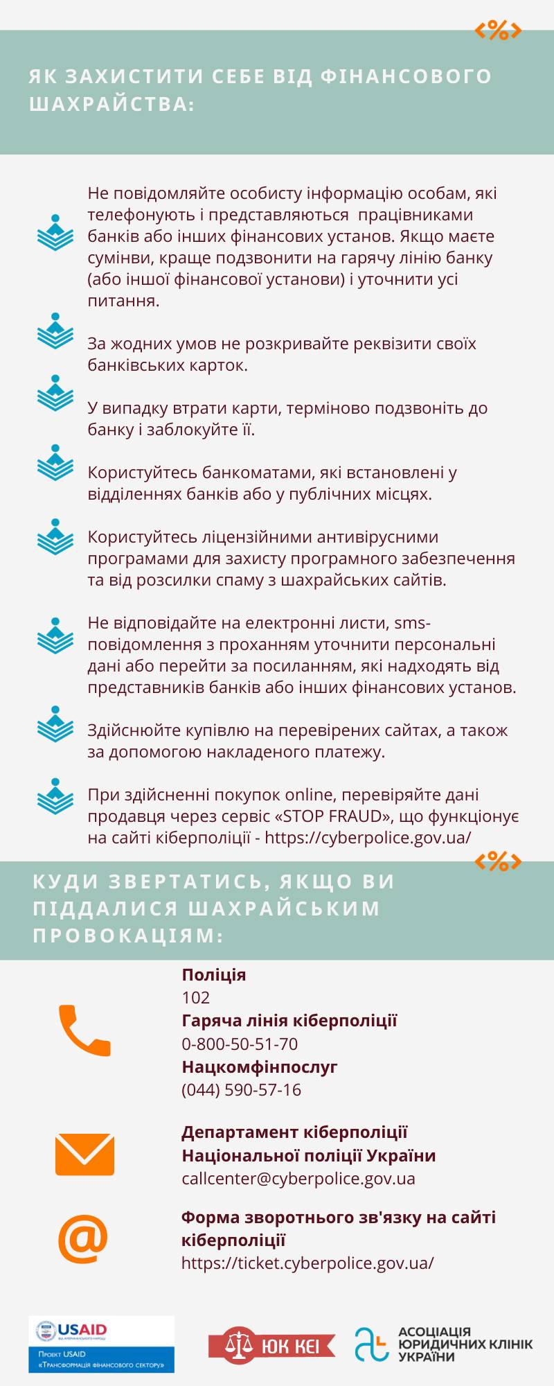 - За жодних умов не розкривайте реквізити своїх банківських карток.