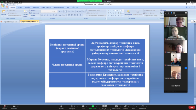 Зустріч проходила дистанційно за сприянням Сектору ліцензування та акредитації Центру менеджменту якості освіти Державного університету економіки і технологій (на базі платформи ZOOM). Модерувала зустріч Наталія СЕРГЄЄВА, керівник Сектору ліцензування та акредитації.