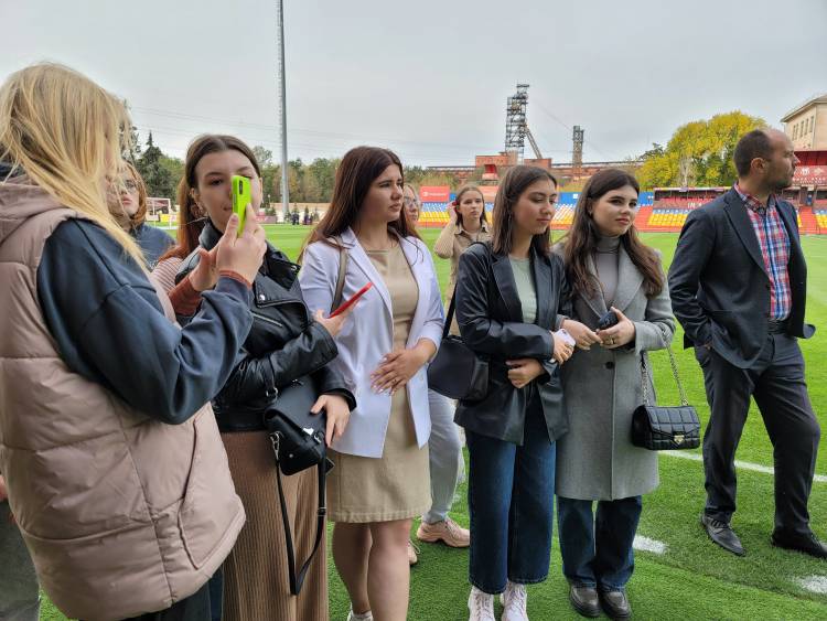Студенти 1-2 курсу спеціальності «Міжнародна інформація та журналістика» побували на стадіоні та у прес-центрі ФК «Кривбас». Екскурсію, презентацію клубу і прес-центру провів Артем Гагарін, який свого часу також навчався в ДУЕТ і отримав професію менеджера, а зараз є віце-президентом клубу. Добре побудований особистий бренд випускника нашого вишу та його високі професійні здобутки – гарна мотивація для нинішніх здобувачів освіти ДУЕТ.