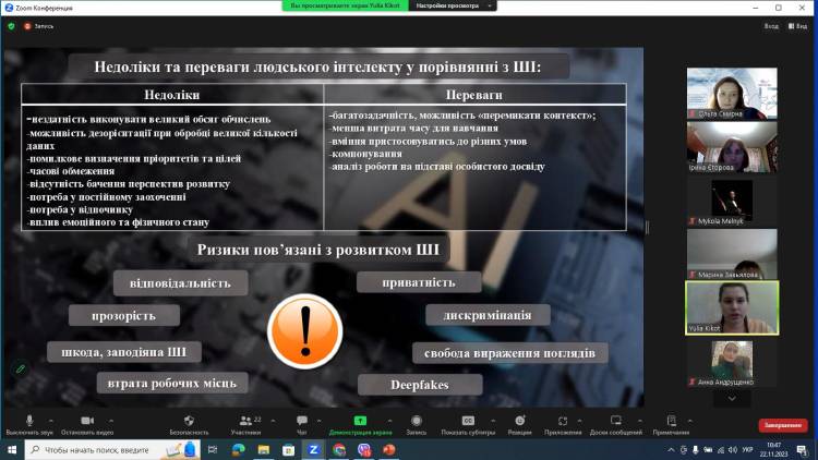 Засідання студентської секції «Цифровізація суспільства та бізнес-інновації» відбулося 22 листопада 2023 року в межах VI Міжнародного конгресу SOCIETY OF AMBIENT INTELLIGENCE 2023 (ISC SAI 2023).