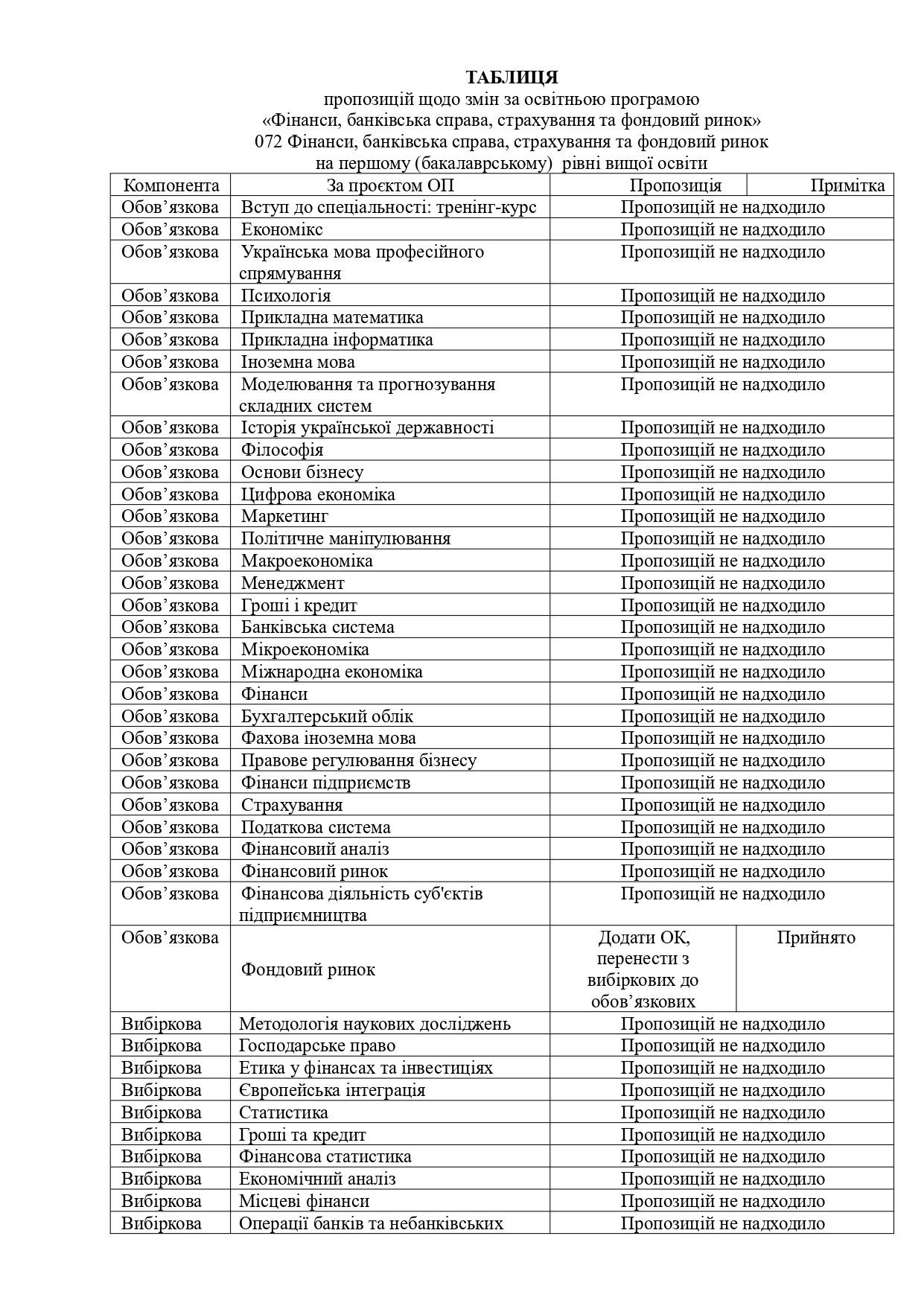 12 грудня 2023 року відбулись громадські обговорення змін до освітньо-професійної програми «Фінанси, банківська справа, страхування та фондовий ринок» за спеціальністю 072 Фінанси, банківська справа, страхування та фондовий ринок галузі знань 07 Управління та адміністрування на першому (бакалаврському) рівні вищої освіти.