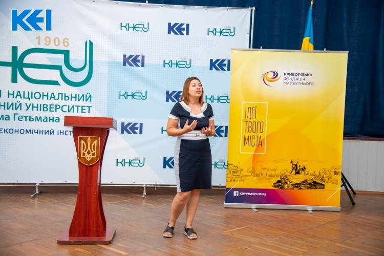 — Я представляю громадську організацію «Криворізька фундація майбут-нього». Про що ця школа? Це формування спільноти лідерів. Будь-якої сфери і будь-якого віку. Наша фундація створена нещодавно, всього 9 місяців ми працюємо, але ми дуже активні, є вже певні напрацювання. А зараз це один із проектів, який ми дуже довго плекали і довго про нього мріяли. Ми сподіваємось, що цей проект буде знаковим для міста Кривого Рогу. Тож запрошуємо студентів до співпраці. Активних, вольових, які ба-жають змінювати місто і які мають власне бачення, свою стратегію. Будемо дуже раді цій співпраці.