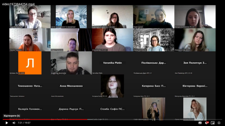 Зустріч проходила дистанційно за сприянням Центру ліцензування та акредитації Державного університету економіки і технологій (на базі платформи ZOOM). Модерувала зустріч Наталія СЕРГЄЄВА, керівник Центру ліцензування та акредитації.