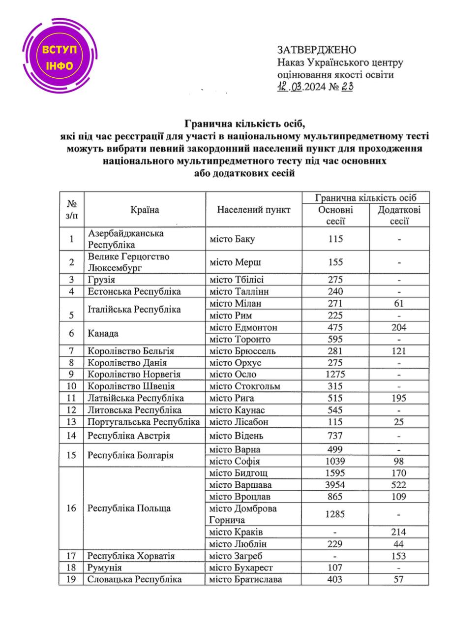 ➡️ Під час основного періоду реєстрації (з 14 березня до 11 квітня), вступники, які будуть проходити НМТ за кордоном, зможуть вибрати з переліку найзручніший для доїзду пункт.