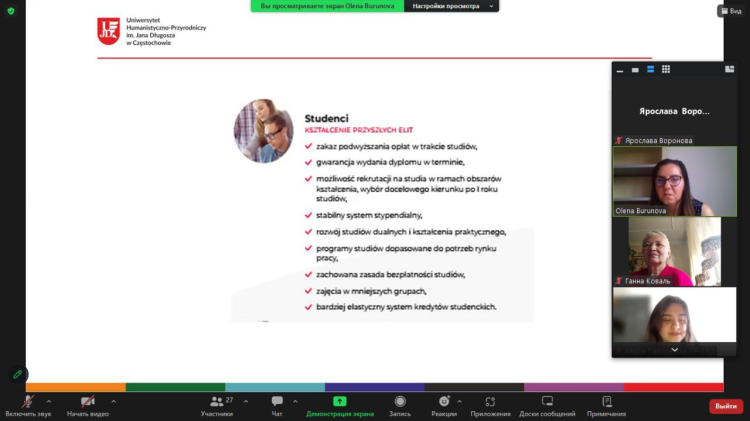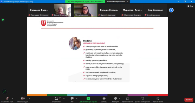 Студенти мали можливість задати питання докторці Олені Буруновій, що стосувалися практичних аспектів реформування освіти, викликів та досягнень, з якими зіштовхнулася Польща на своєму шляху. В обговоренні також взяли участь викладачі університету.