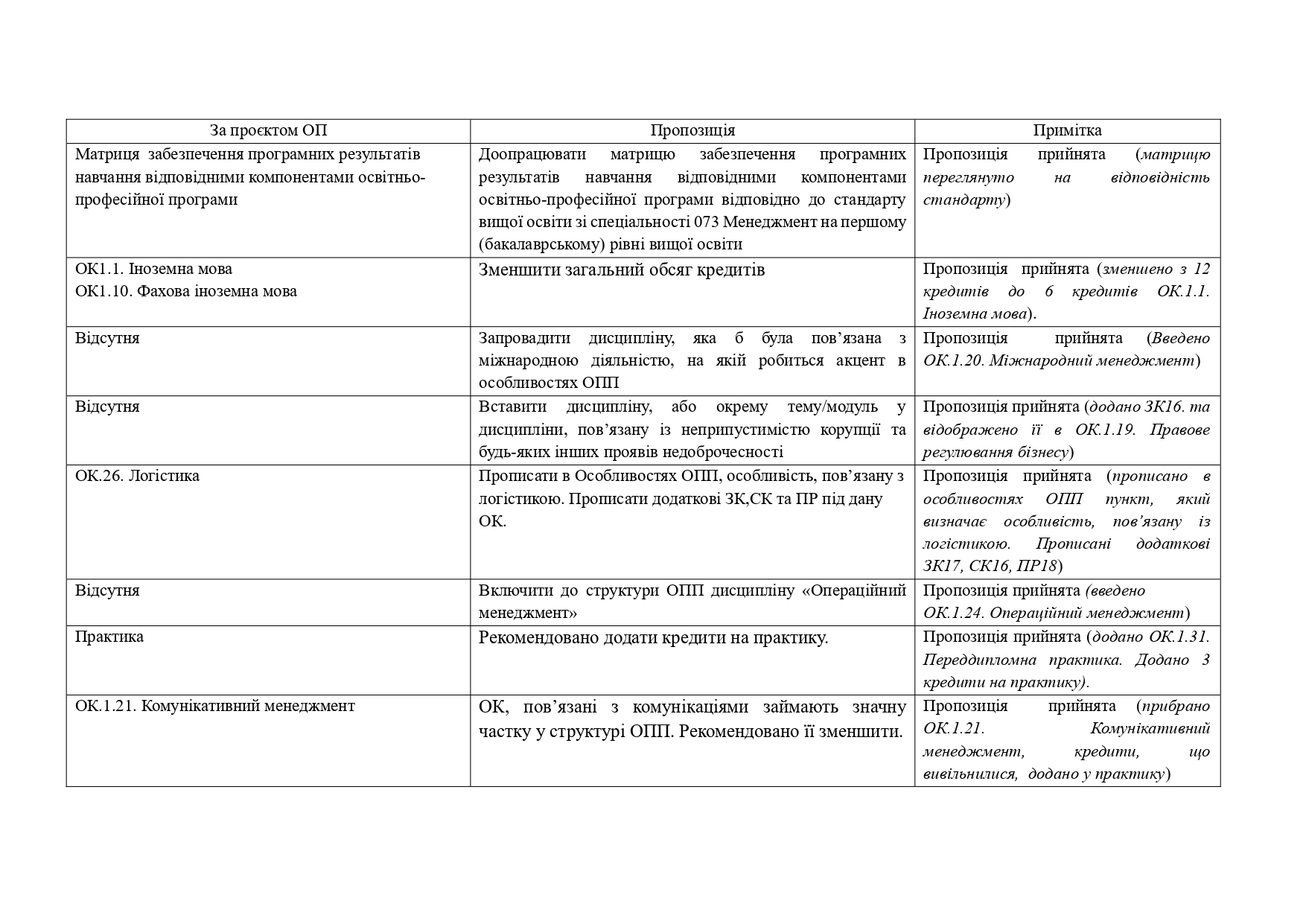 Результати обговорення проєкту освітньо-професійної програми «Менеджмент»