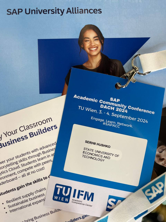 Державний університет економіки і технологій приєднавшись у 2024 році до світової програми SAP University Alliances став учасником конференції SAP Academic Community Conference 2024 (DA-CH) у Віденському технічному університеті 3 та 4 вересня 2024 року.