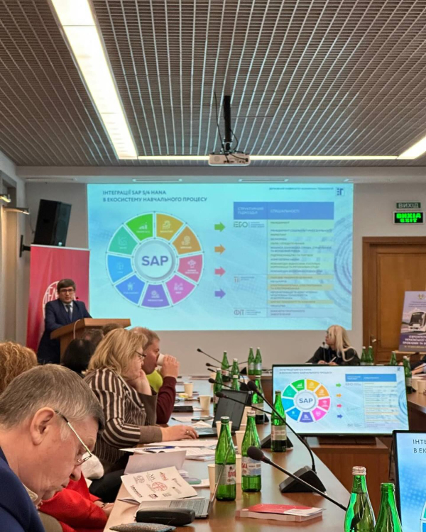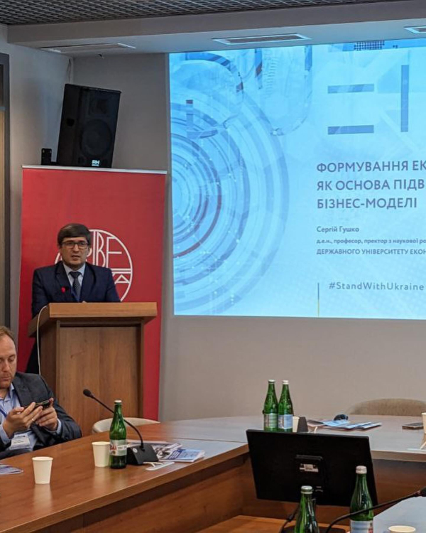 На пленарному засіданні Державний університет економіки і технологій представляв доктор економічних наук, професор, проректор з наукової роботи та міжнародних зв’язків Сергій Гушко з доповіддю «Формування екосистеми університету як основа підвищення стійкості бізнес-моделі».