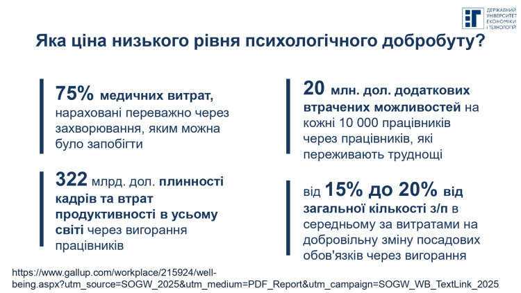 - Фокусуємося на компонентах психологічного добробуту, ролі керівника у формуванні позитивного клімату, а також ефективних wellbeing-практиках та підтримці work-life balance для запобігання «тихому вигоранню».