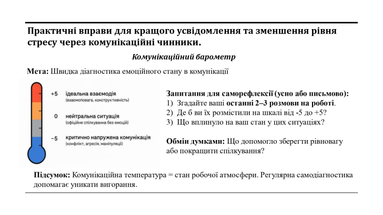 - Опанувати практики саморегуляції та самодопомоги для збереження внутрішнього ресурсу.