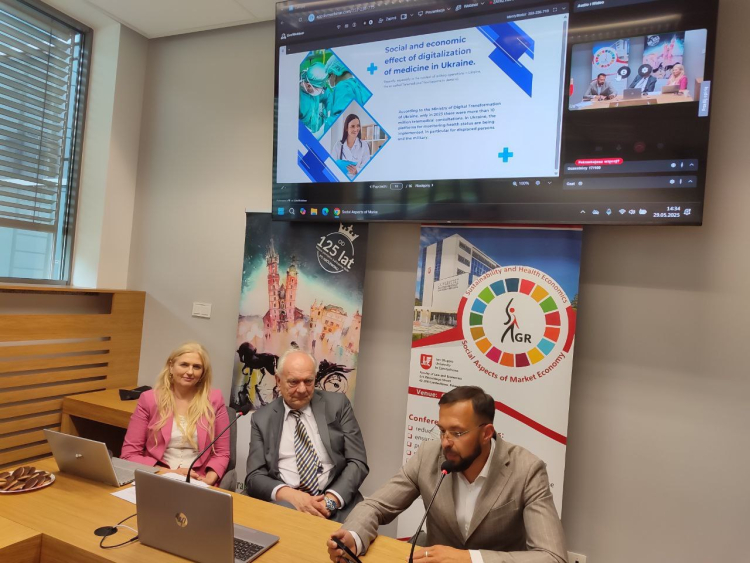 Державний університет економіки і технологій представив на конференції доцент кафедри права Юридичного навчально-наукового інституту Владислав Ямковий з доповіддю на тему: «Цифровізація медичних послуг в Україні: правовий, економічний та соціальний аспекти» (Digitalization of medical services in Ukraine: legal, economic and social aspects).
