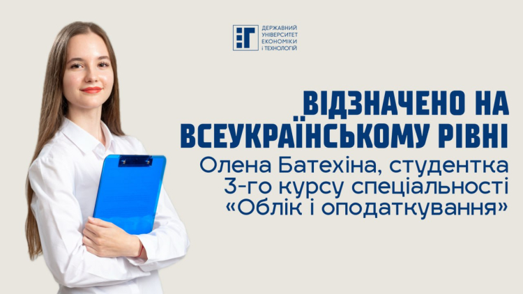 Олена Батехіна, здобувачка вищої освіти 3-го курсу бакалаврського рівня, яка навчається за спеціальністю «Облік і оподаткування», взяла участь у Всеукраїнському конкурсі студентських наукових робіт з публічних фінансів, який проходив в Державному податковому університеті у квітні 2025 р.