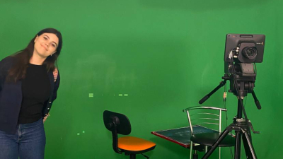 Наступна локація – це знімальна студія. Усе професійно: камери, стіл ведучого, суфлер. Студентам продемонстрували також зелене тло, яке раніше активно використовували, а тепер майже ні.