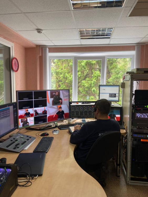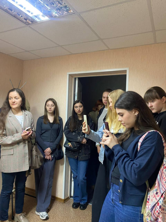 Після цього спеціаліст пояснив, як редагує голос, додає ефекти й монтує запис. Далі студенти і студентки ознайомилися з роботою монтажера. Він розповів про створення готового продукту та показав фрагменти проєктів, які зараз у розробці.