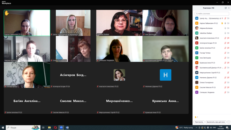 14 травня 2025 року о 15-00 відбулося обговорення проєкту освітньо-професійної програми підготовки здобувачів вищої освіти «Середня освіта (Історія та громадянська освіта)» за спеціальністю А4 Середня освіта за предметною спеціальністю А4.03 Середня освіта (Історія та громадянська освіта) галузі знань А Освіта на першому (бакалаврському) рівні вищої освіти та обговорення внесення змін до  освітньо-професійної програми «Середня освіта (Історія, правознавство)» за спеціальністю 014 Середня освіта за предметною спеціальністю 014.03 Середня освіта (Історія та громадянська освіта) галузі знань 01 Освіта/Педагогіка на першому (бакалаврському) рівні вищої освіти. Громадське обговорення пройшло у змішаному форматі: очно – в приміщенні Університету (пл. Захисників України,2) та дистанційно з використанням платформи Zoom під відеозапис. Засідання вела завідувач Центру ліцензування та акредитації Державного університету економіки і технологій Сергєєва Наталія Анатоліївна.