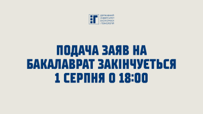 Нагадуємо, що подача заяв на бакалаврат закінчується 1 серпня о 18:00.