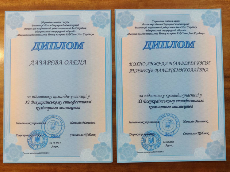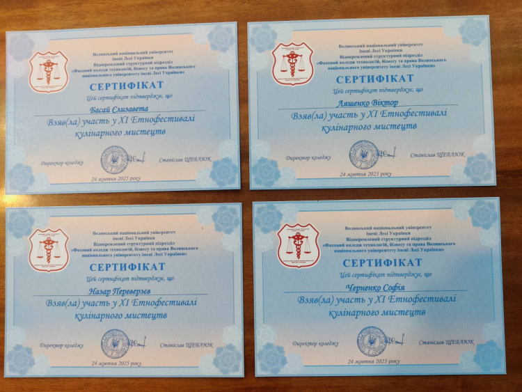 У жовтні пройшов вже традиційний конкурс кухарів - ХІ Всеукраїнський етнофестиваль кулінарного мистецтва, який об’єднав 26 команд з усієї України. Організатором виступив ВСП «Фаховий коледж технологій, бізнесу та права ВНУ імені Лесі Українки» (Луцьк).