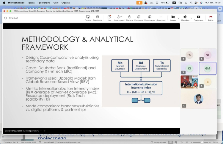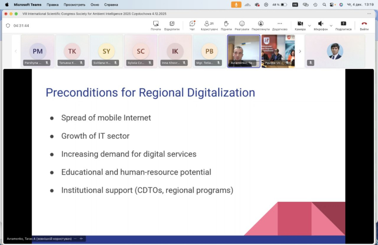 4 грудня 2025 року в Jan Dlugosz University in Czestochowa (Польща) відбулася робота секції «Digital Transformation of the Economy» у рамках VIII International Scientific Congress «Society of Ambient Intelligence 2025». Захід об’єднав представників Польщі, України, Чехії, США, Австрії, Туреччини, Литви та Норвегії, створивши професійний майданчик для презентації наукових результатів та обговорення стратегічних напрямів розвитку цифрової економіки.