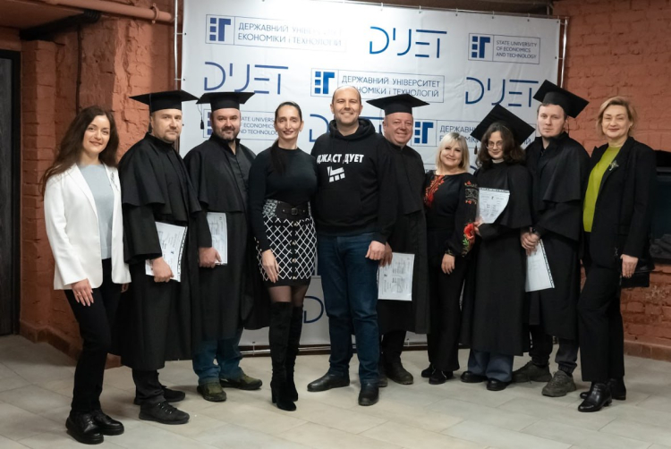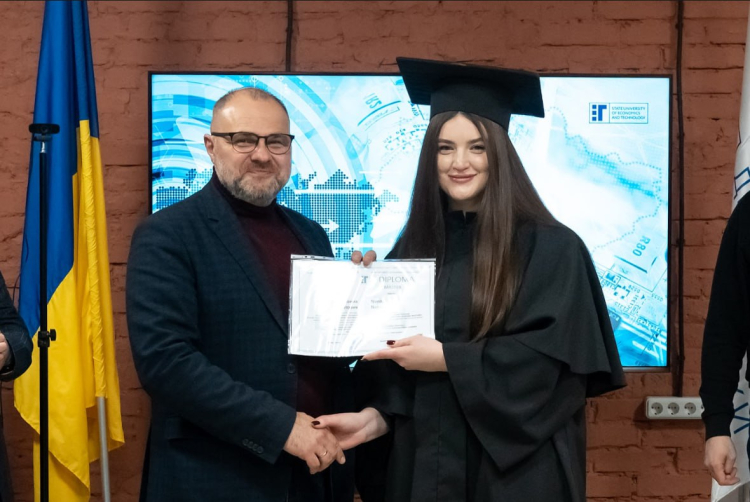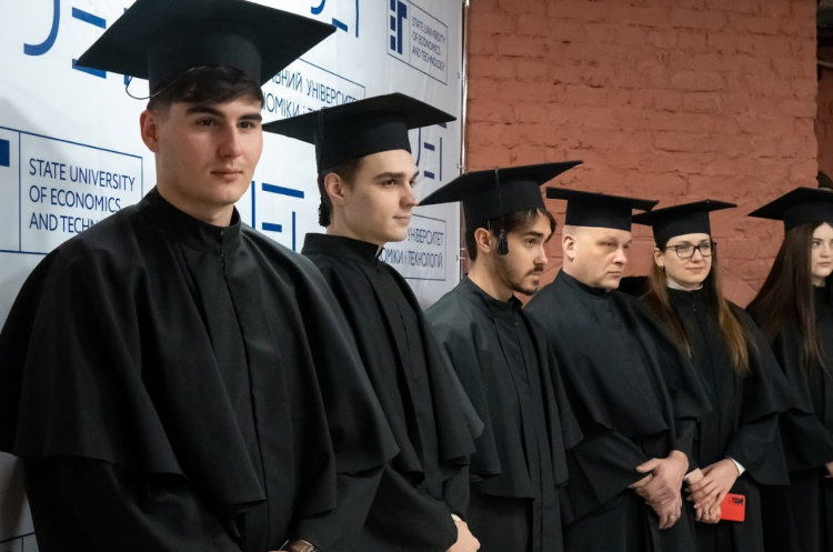 У Державному університеті економіки і технологій відбулася урочиста церемонія вручення дипломів магістрам. Документи про здобуття повної вищої освіти отримали випускники всіх інститутів університету – економіки та бізнес-освіти, технологічного, юридичного, а також факультету інформаційних технологій.