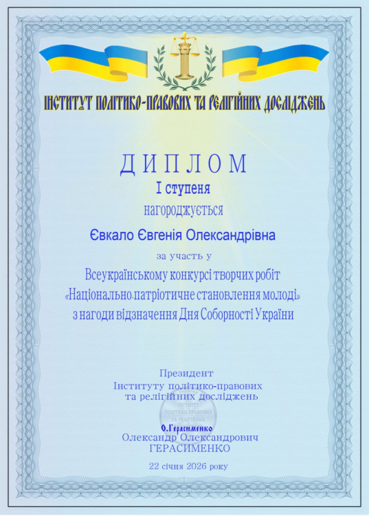Диплом І ступеня (130 переможців) — Євкало Євгенія