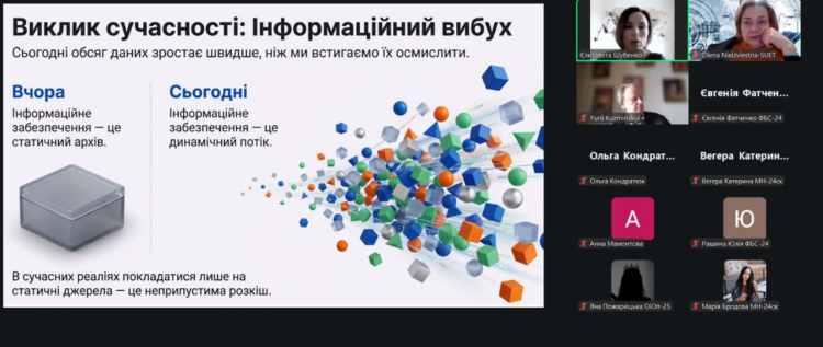 Особливістю лекції став перехід від теоретичного опису джерел до практичної демонстрації сучасних технологій. Основний акцент було зроблено на тому, що у сучасних реаліях інформаційне забезпечення – це не статичний архів документів, а динамічний потік даних, який потребує автоматизованих алгоритмів обробки.