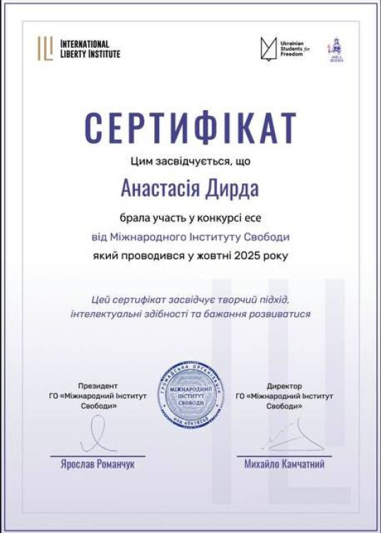 Студентки першого курсу спеціальності «Право» гідно представили університет на всеукраїнському інтелектуальному майданчику – конкурсі есе від Міжнародного Інституту Свободи.