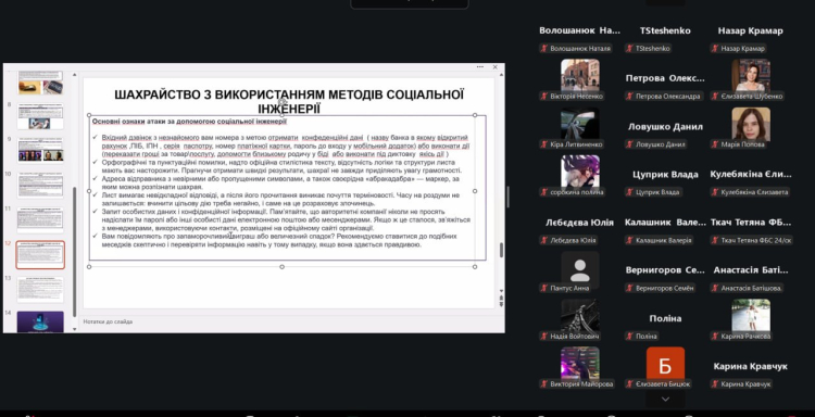 Під час зустрічі експерт детально розібрав найпоширеніші види загроз: