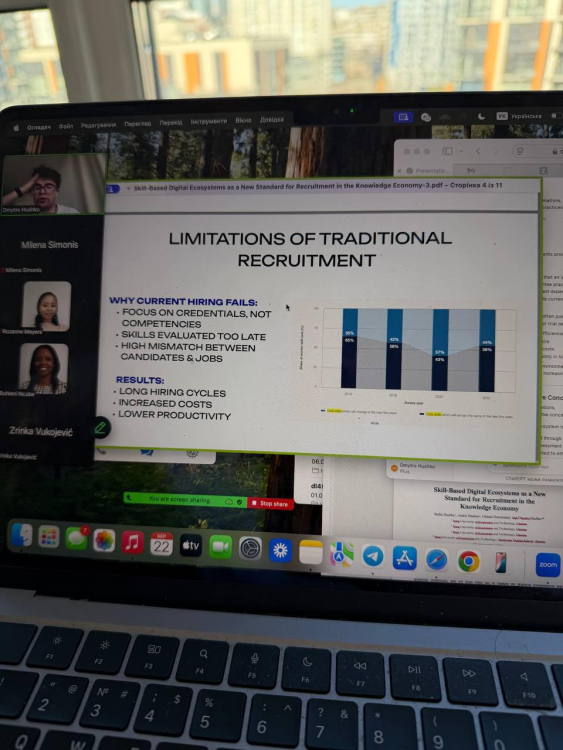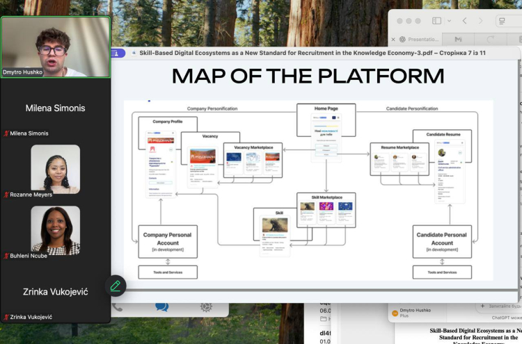 У своїй доповіді дослідник розкрив сучасну тенденцію трансформації ринку праці, яка полягає у поступовому переході від традиційної моделі оцінювання кандидатів за формальними ознаками (освіта, дипломи) до підходу, орієнтованого на реальні навички та компетентності. Особливу увагу було приділено ролі цифрових екосистем, що інтегрують освітні процеси, оцінювання навичок і механізми рекрутингу в єдине середовище.