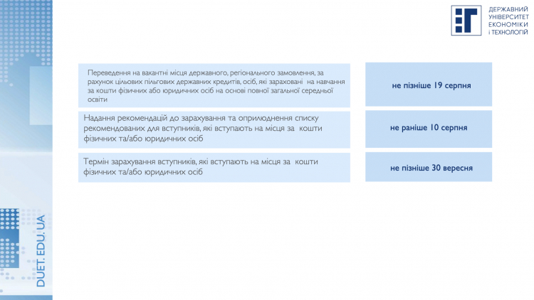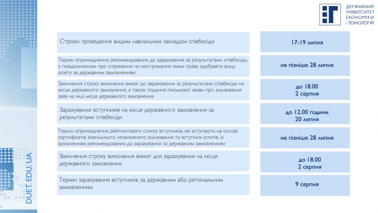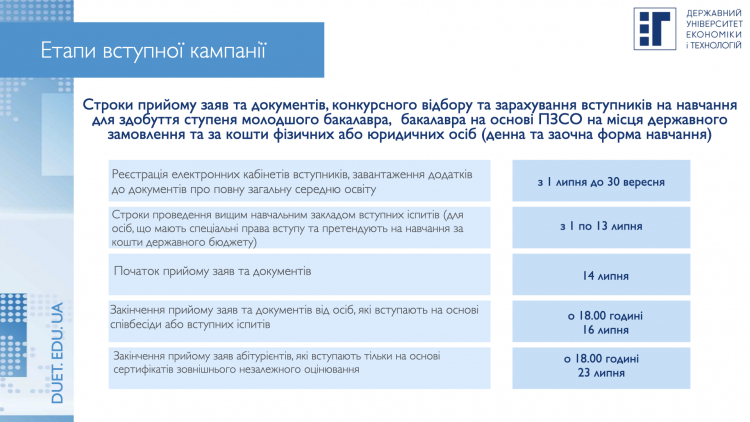 ДУЕТ продовжує відстежувати нововведення до правил вступу й інформуватиме про них. Закликаємо майбутніх абітурієнтів відповідально поставитись до вступної кампанії, вибору професії та закладу вищої освіти.