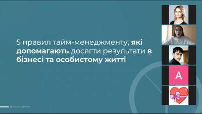 Вікторія надала "працюючі" кейси з тайм-менеджменту та проговорила з гостями вебінару про те, де вони можуть стикатися з помилками.