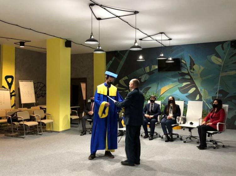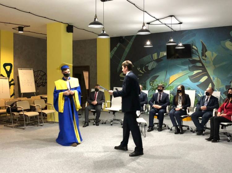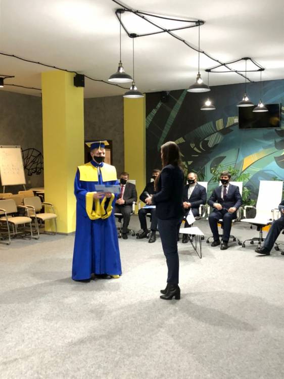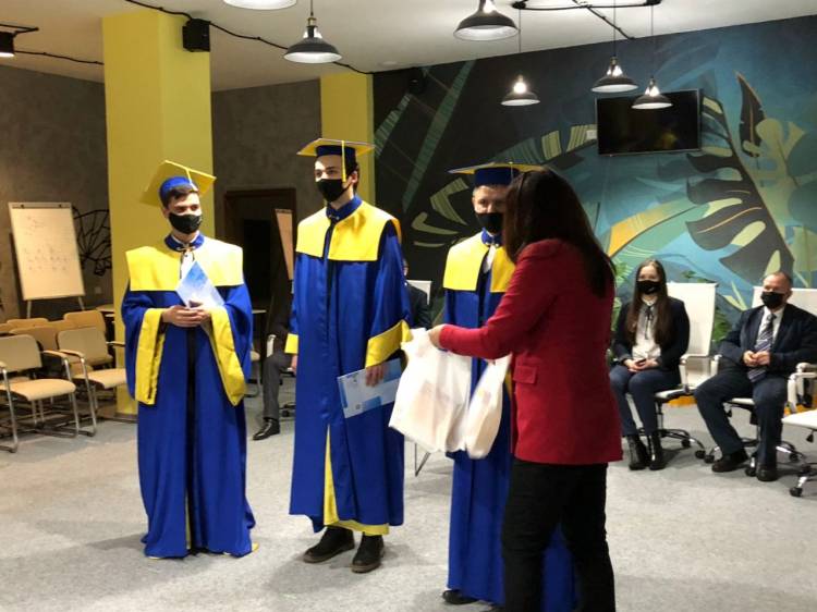 На онлайн-врученні дипломів були присутні представники студентської спільноти - голова Ради студентського самоврядування Анна Велика, яка модерувала захід, а також «уповноважені посли» випускників - тепер вже магістр права Микита Водзянський, магістр менеджменту Владислав Чайка та магістр інженерії програмного забезпечення Владислав Барановський.