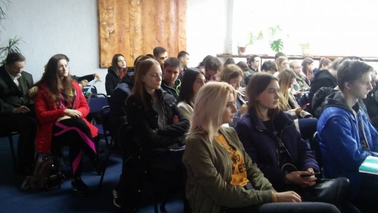 У лаунж-зоні інституту зібралися студенти, викладачі, завідувачі кафедр, співробітники та декан факультету економіки та управління. Вони з увагою прослухали виступ представника компанії «Рошен-Кривбас» Ольги Монастирської.