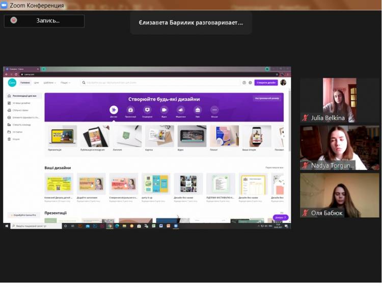Завдяки запрошеній спікерці Єлизаветі Барилик, методисту Інформаційно-творчого агентства ЮН-ПРЕС, учасники вебінару дізналися про можливості сервісу графічного дизайну Canva та одразу ж випробували їх на практиці. Кожен міг не тільки створити власний дизайн синхронно зі спікеркою, але й отримати фідбек щодо дотримання основних правил графічної композиції. «В сервісі Canva чимало переваг, одна з яких - простота використання. Вмикайте фантазію, і перед вами - широкі можливості для візуального оформлення ваших ідей» - зазначила Єлизавета в ході практикуму.