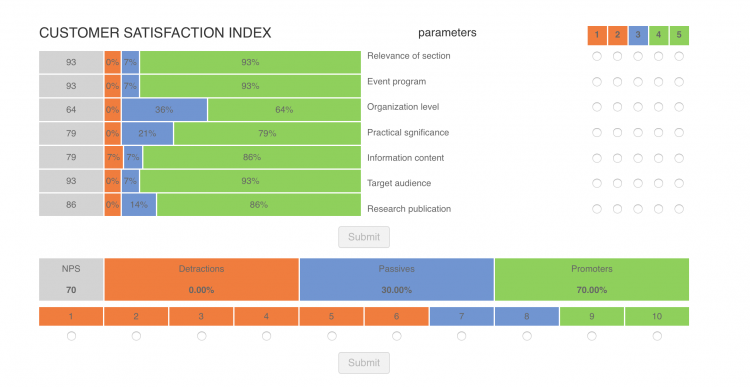 • NPS (Net Promoter Score) - індекс лояльності споживачів, що відображає готовність рекомендувати Конгрес іншим зацікавленим особам;