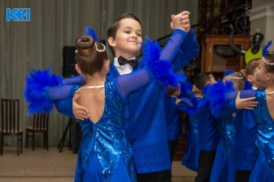 Розпочинається бал, звичайно ж, кружлянням пар юних виконавців у вихорі бального танцю.