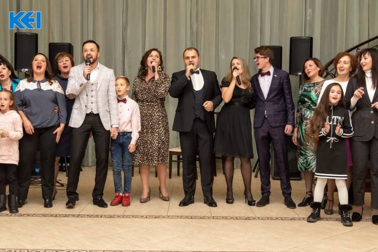 На завершення свята (і це стало справді родзинкою свята) заспівали ліричну пісню наші викладачі і співробітники: Владислав Ямковий, Олена Гушко, Наталія Білоконь і Валентин Орлов. На імпровізовану сцену виходять усі гості з дітьми: