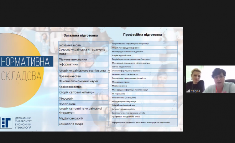 За ініціативи Центру експертизи у гірничо-металургійній галузі Державного університету економіки і технологій 18 травня 2021 року відбулася відкрита онлайн-зустріч зі стейкхолдерами освітньо-професійних програм (ОПП) щодо обговорення ОПП «Міжнародна інформація і журналістика» для підготовки здобувачів вищої освіти на першому рівні вищої освіти за спеціальністю 291 «Міжнародні відносини, суспільні комунікації та регіональні студії».Освітня програма розроблена і проваджується на кафедрі міжнародної економіки.У зв’язку із карантинними обмеженнями зустріч проходила он-лайн за допомогою платформи Zoom.