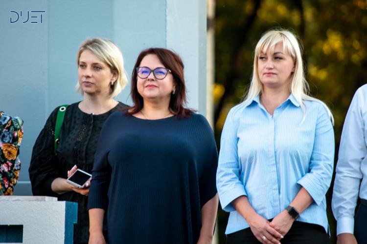 Всі вони, студенти технологічного інституту, факультету інноваційних технологій, юридичного факультету, Інституту управління та бізнес освіти, економічного інституту, фахового коледжу «Політехніка» святкують свій найкращий день. На майданчик біля флагштоку виходить колона студентів – це до родини ДУЕТу приєднуються студенти проєкту «Нова фабрика».